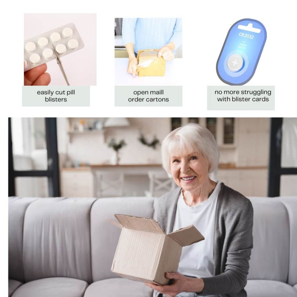 Blister and clamshell packings – “perfect for safely cutting pill blister packs when preparing daily medications”