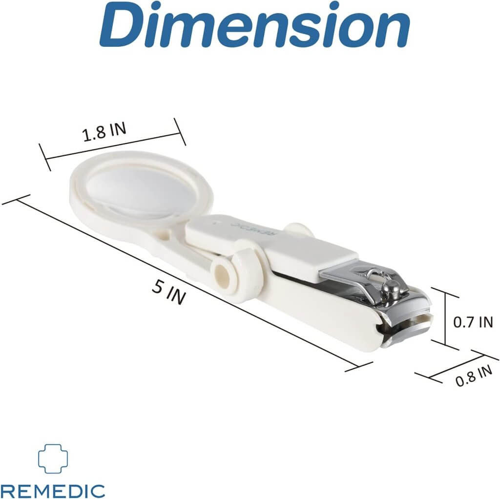 The Remedic Nail Clipper with Magnifier is designed especially for seniors, people with low vision, arthritis, or anyone who wants a safer, easier way to trim nails at home. The built-in 2.5× magnifying glass gives a clear, enlarged view of your nail so you can see exactly where to cut — no guessing, no bending forward to try to focus, and no fear of cutting the skin.